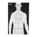 Action Target VTAC-P, Viking Tactics Double Sided Advanced Training Target, Marksmanship Side Has 4 SR-1C Bulls-Eye Target w/1" Square Sighting Grid, Silhouette Side w/Visible Skeleton, Black/White, 23"x35", 100 Per Box VTAC-P-100