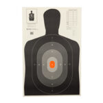 Action Target B-27E Pros Target, Shaded Scoring Rings Starting Outside And Going Dark To Light With A Bright Orange Center, Silhouette Cut Off Below Ring 7, 23"x35", 100 Per Box B-27EPROS-100