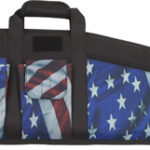 The Victory Tactical Rifle Case is Made in the USA and fits rifles up to 42 in. Our tactical rifle case features a stars and stripes pattern to show your support for the 2nd Amendment. It is equipped with thick foam padding for maximum protection multiple external pockets for magazines and gear. It also features a padded hook and loop carry handle. The exterior is made from rugged Endura fabric and the interior is a soft knit lining. For security we have made the tactical rifle case lockable.