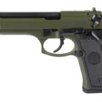 Beretta 92FS, Semi-automatic, Double Action/Single Action, Metal Frame Pistol, Full Size, 9MM, 4.9" Barrel, Matte Finish, Olive Drab Green, Fixed Sights, 15 Rounds, 2 Magazines J92F300GR15