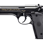 Beretta 92SB 50th Anniversary Edition, Semi-automatic, Double Action/Single Action, Metal Frame Pistol, Full Size, 9MM, G10 Grips, Anodized Finish, Black, 4.9" Barrel, Fixed Sights, 15 Rounds, 2 Magazines, Include Challenge Coin and History Booklet J92SB15