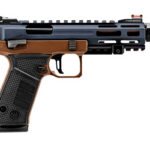 Beretta B22 Jaguar Metal Competition, Semi-automatic, Internal Hammer Single Action Only, Full Size, 22 LR, 5.25" Threaded Barrel with Tandemkross Compensator, Bronze and Gray, Ambidextrous Safety, Fiber Optic Front Sight, Optic Ready, 10 Rounds, 2 Magazines JB22TACMET10MY1