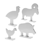 4pc set includes 1 of each target style (chicken turkey pig and ram). Powder coated finish.