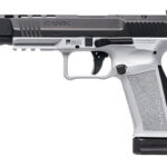 CANIK TP9, METE SFx, Striker Fired, Semi-automatic, Polymer Frame Pistol, Full Size, 9MM, 5.2" Barrel, Cerakote Finish, Black Slide, White Frame, 3 Dot White Sights, Flared Magwell, Optic Ready, 2 Magazines, (1)-18 Round and (1)-20 Round, Includes Reversable OWB/IWB Holster and Hard Case HG6977-N