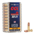 Shoot flatter and hit distant small game harder with CCI Velocitor HP loads. They’re 200 fps faster than 22 Long Rifle high-velocity loads of the same bullet weight and provide excellent weight retention downrange energy and penetration.
