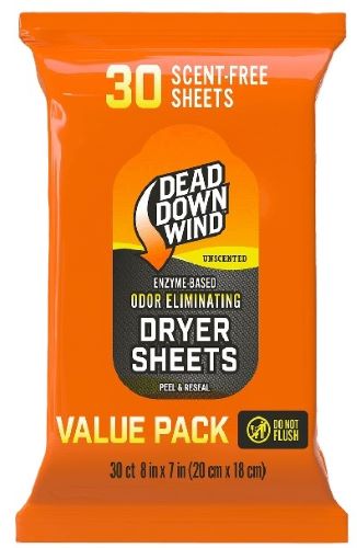 Dead Down Wind’s Dryer Sheets deliver odor elimination coupled with anti-static performance – that’s why they are wet coming out of the package. If you are using a regular dry sheet then it probably isn’t doing anything for odor elimination. DDW’s Dryer Sheets are the only biodegradable dryer sheet on the market.