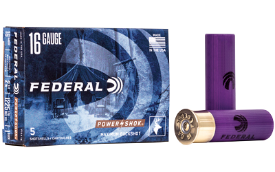 Federal Power-Shok Buckshot 16 ga 2 3/4″ MAX 12 plts #1B 1225 fps – 5/box