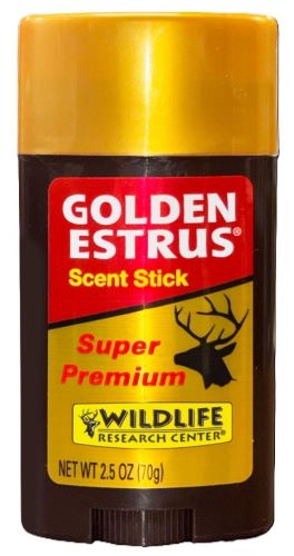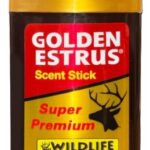 Golden Estrus Scent Stick Formula – Weather Resistant and Long Lasting. Made with fresh and super premium doe urine with estrus secretions. Carefully collected from whitetail does. Strong sexual attractor triggers the mating instincts of rutting bucks.