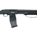 When it comes to detachable magazine pump-action shotguns the Mossberg 590M has the balance construction and a mag durability you need. Along with mag-fed convenience the 590M features positive steel-to-steel lockup twin action bars drilled and tapped receivers and an ambidextrous safety.