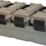 A rugged tactical carrying crate for multi-caliber ammo storage and transport. Comes with four O-ring sealed 30 Caliber ammo cans(AC30T) for multi-caliber ammo storage. 30 Caliber ammo cans are a convenient size to store all types of bulk ammo. The only problem is that they are easier to knock over than the larger ammo cans. Now you can stack them as tall as you want in these specialized crates. Made of rugged polypropylene to last. Stackable and strapable with four tie down spots for ATV attachment.