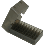 Want to hold up to 50 rounds of ammo conveniently? These flip top boxes are available in five sizes to accommodate any type of handgun ammo. They are stackable for storage feature an easy-to-grip textured surface and come with a load label.