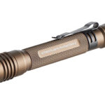 The ProTac 2AA-X USB is a multi-fuel tactical flashlight that uses Streamlight’s lithium polymer USB-C rechargeable battery pack. It also accepts two AA alkaline batteries as a back up. About the size of a marker it conveniently fits in your pocket and produces 550 lumens.